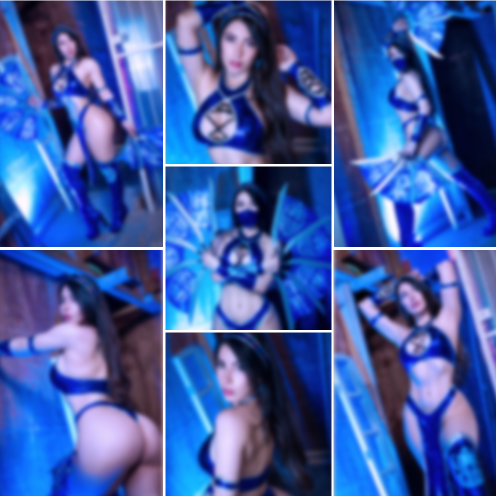 Behold the princess of Edenia! A princess and assassin, a beauty on the throne and a beast in combat skill. My take on Kitana is based on her MK9 appearance with knee-high boots, a thin loincloth, and a small halter top with a “window” in the middle. Don’t forget the lethal fans and the seductive facemask, though you’ll see plenty of photos of me with and without both. I am battle-ready with a confident look on my face and a stance to match. The gentle blue lighting draws attention to my abs and certain other curves... enough to distract you into submission! The full set contains 40 HQ photos.